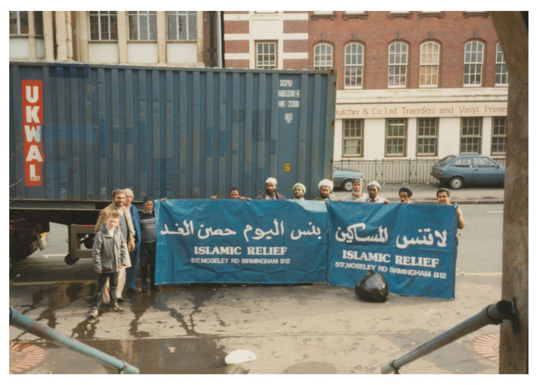 Pictured in 1991, Islamic Relief volunteers at work outside our first office, in Moseley Street, Birmingham, UK.