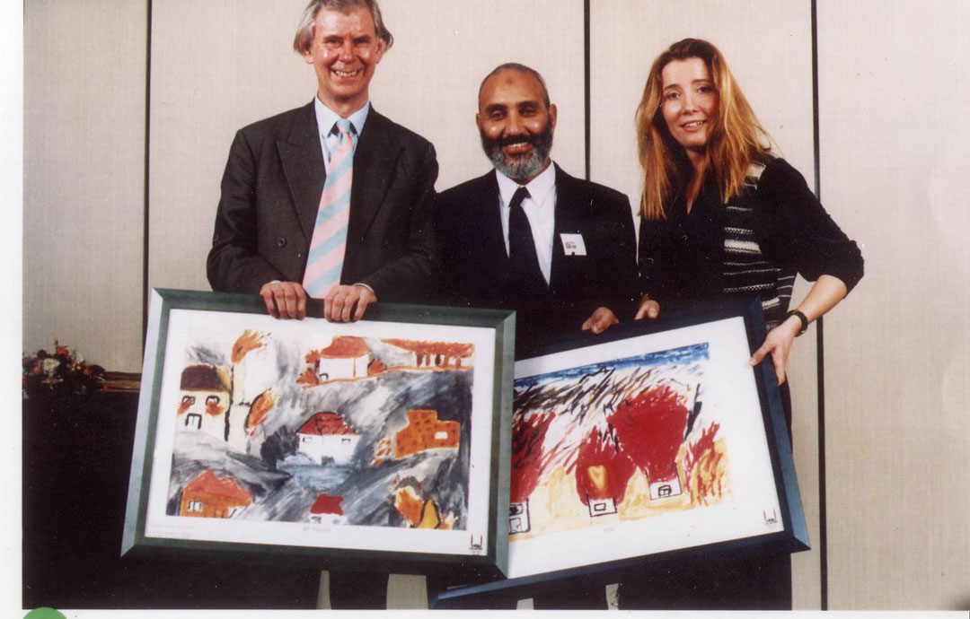 The editor of The Independent Sir Andreas Whittam Smith and actor Emma Thompson with Islamic Relief founder Dr Hany El-Banna