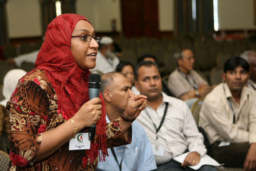 In 2007, Sabrina Salim addresses an international consultation on Islam and HIV/Aids, run by Islamic Relief in South Africa with funding from DFID, now FCDO.