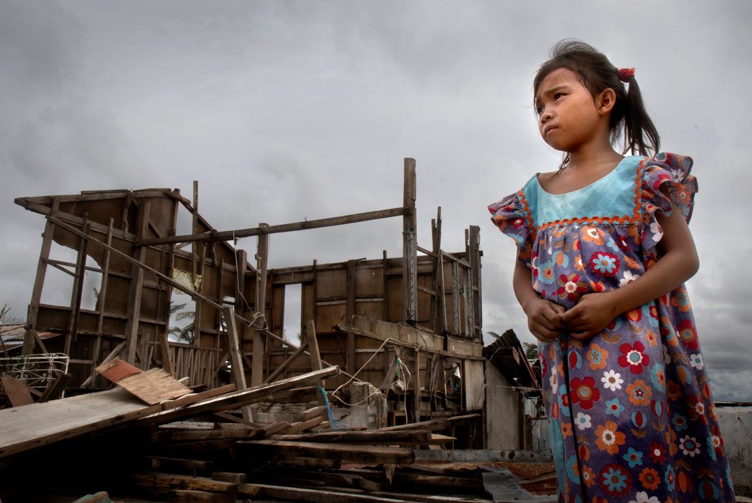 Eden stands near her ruined home, which came crashing down when Typhoon Haiyan barrelled into the Philippines