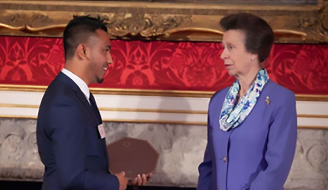 HRH Princess Anne presents the Princess Royal Training Award to Abdulla Almamun, National Volunteer Coordinator for Islamic Relief UK